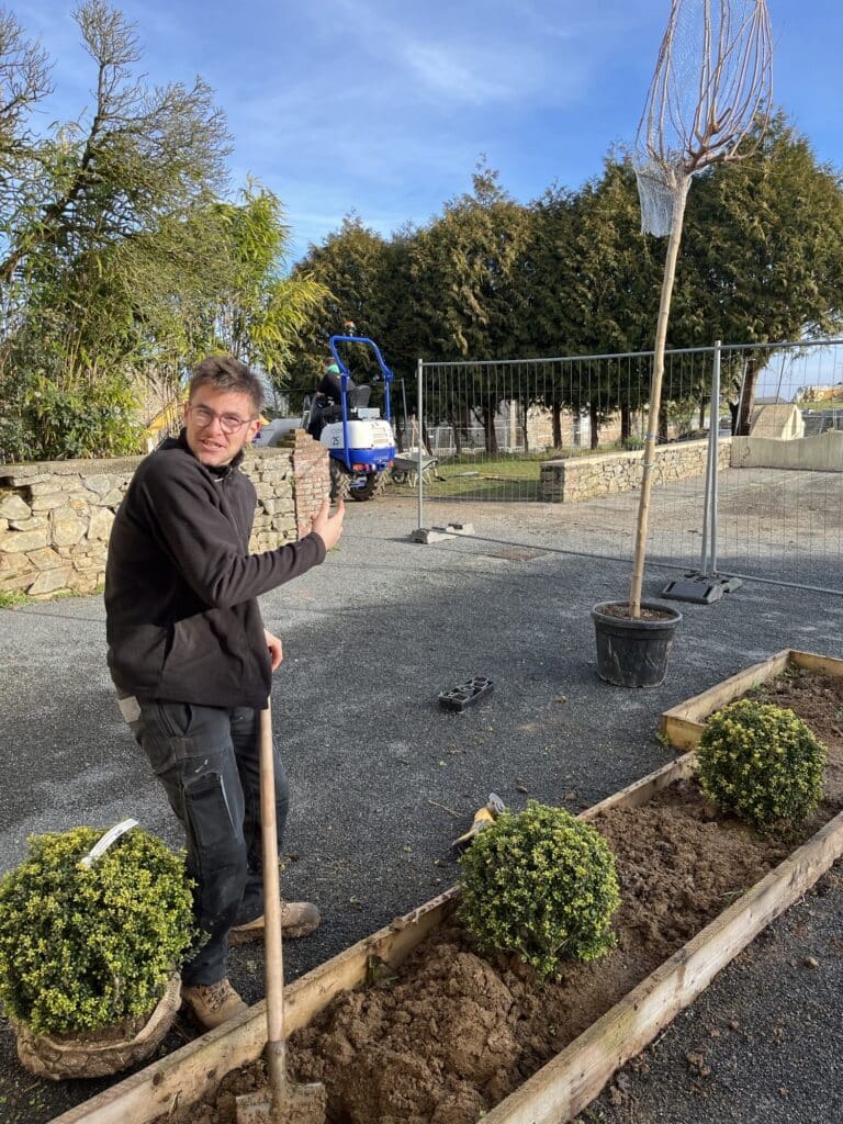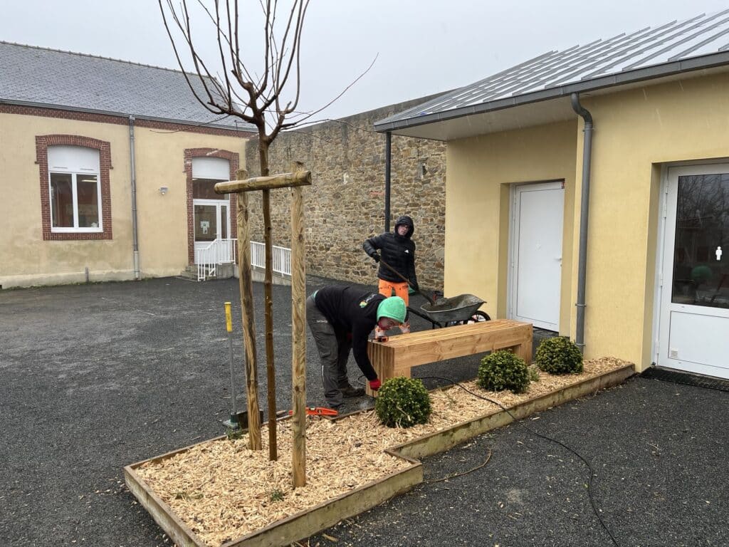 Les apprentis en BP « AmĂ©nagements Paysagers » ont conduit fin janvier un chantier de crĂ©ation Ă lâĂ©cole Notre-Dame de Pontmain, Ă La BaconniĂšre (53), dans le cadre dâune situation dâĂ©valuation portant sur la planification et la gestion dâĂ©quipe.